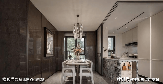 项目采用鎏金塔冠造型,灵感来源于国际邮轮港的曲线,流光美学的外立面,既有辨识度又有质感,是未来业主身份的象征。阳光倾泻而下,在不同光影与环境下,让家成为一件艺术品。