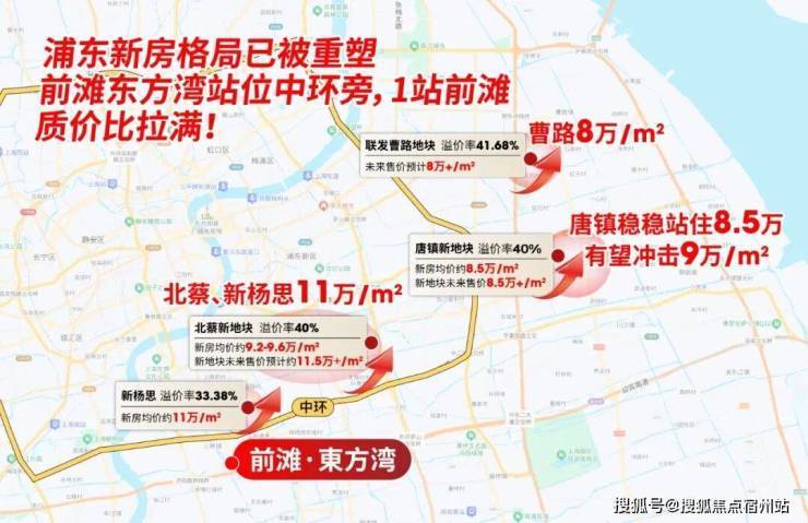 北蔡新“地王”均价约11万/㎡,唐镇稳站8.5万/㎡,新“地王”未来售价有望冲击9万/㎡;曹路新“地王”未来售价有望冲击8万/㎡。