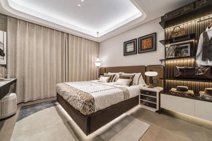 三重归家仪式感:从玄关静心归家,到厅堂欢聚共鸣,再到卧室精神栖居,由外向内从容过渡,把家的静谧与尊崇,做到了极致。