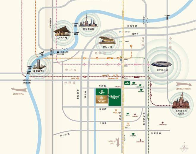项目距离外环约1.5km,东侧紧邻沪南公路和地铁18号线,首先康桥东接迪士尼国际旅游度假区,北接联洋世纪公园,距离陆家嘴约12公里。