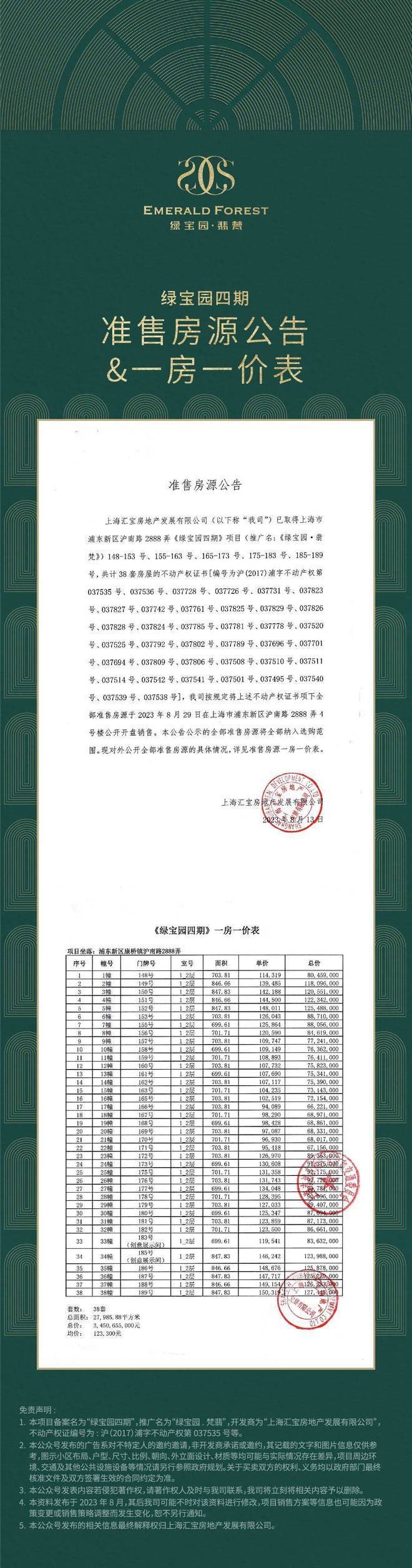 【绿宝园翡梵】:建面约684/748/859平别墅,共38套,少量房源在售,可直接下定,总价约7000万起!