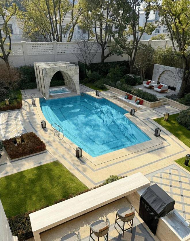 社区配套:户均花园带泳池,社区内设会所(含恒温泳池)、足球场、网球场等,绿化覆盖率达45%,以“森林秘境”为特色。