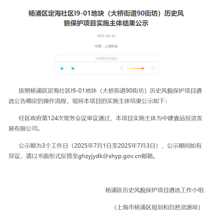 中建壹品·外滩元境✅✅售楼处电话:400 - 1010 - 064✅✅前段时间,杨浦定海社区I9-01地块(大桥街道90街坊)历史风貌保护项目遴选结果公示:中建壹品投资发展有限公司成功拿下杨浦大桥街道90街坊地块。