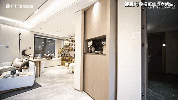 🔝 保利西郊和煦售楼处热线☎️☎️:400-9966-940✖️✔️全墙纸交标结合整幅岩板客厅景墙,以定制设计感提升空间立体感。