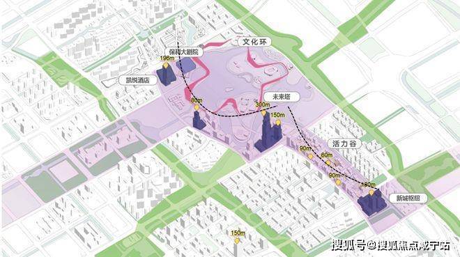 未来塔:位于CAZ的正中央,建成约300m,将成为嘉定甚至是上海西北第一高楼,是真正的C位地标(规划中)。