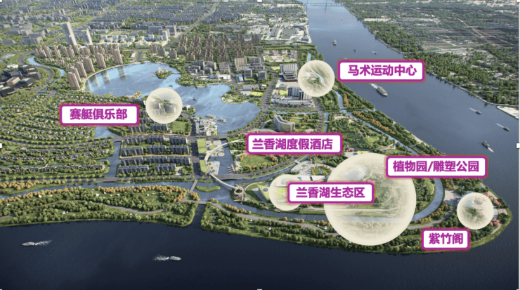 整个兰香湖生态社区,沿着兰香湖约40万㎡的湖区,打造约3.7公里的岸线。湖边规划有众多高端配套,比如商业街、星月步道、赛艇俱乐部、兰香湖度假酒店阳光乐园。还有丰富的水上运动项目、马术俱乐部和各种体育运动场地。未来的兰香湖生态社区,就是一种健康生活的休闲样板。