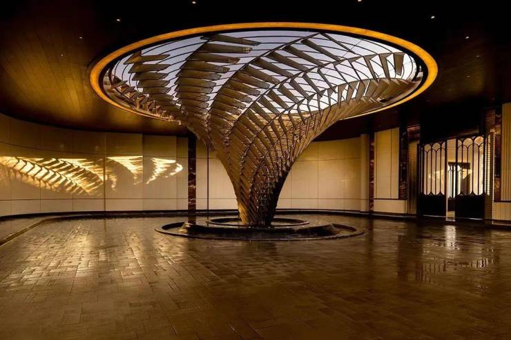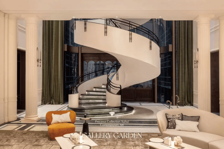 走进其中,更是令人惊艳。设计师巧妙融入梧桐叶脉元素花窗、徐家汇藏书楼圆弧门廊等经典元素,用现代手法将其转译,呈现出独特的美学魅力。(设计思路呈现,产品以最终交付为准)