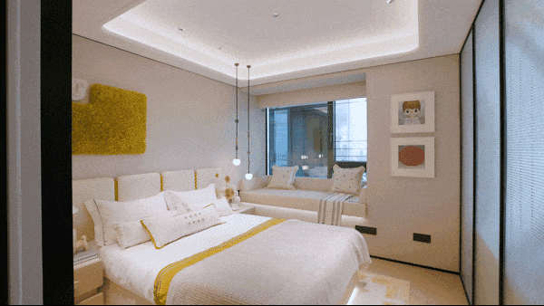 主卧转角飘窗,清晨咖啡,夜晚小酌,坐拥270°流动风景,私享片刻宁静;