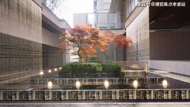 下沉庭院整体长建壹品外滩源著著售楼处预约热线:400-9955-415☎️☎️✅✅✅《官方认证》约18米,进深约9.5米,庭院的上下景观通过水帘相连通,中间结合有着层层叠水的水景,搭配水晶砖的景墙,将品质感拉满。