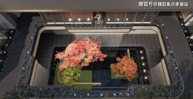 项目利用下沉式景观庭院,结合艺术花园、摩登水景等,打造了一座高端的下沉式会所,规划设有泳池、健身房、行政酒廊等场景。