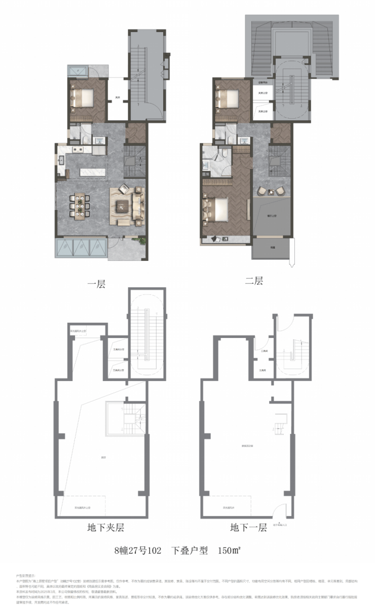 项目叠墅包含建面约141㎡上叠和建面约150㎡下叠