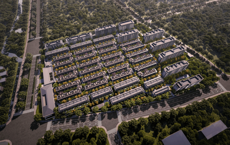 项目没有采取国贸的标准产品线,而是因地制宜融入广富林文脉,塑造全新的“新江南学院派”风格建筑。
