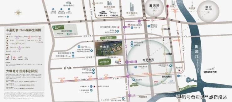 从更高视野看,项目西南方向还有闵行经开区,北部有航天城、莘庄工业区等,并可通过S4沪金高速、虹梅南路高架快速衔接莘庄、徐家汇等高能级板块。
