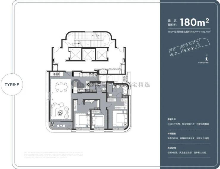 三梯两户布局,私享独立电梯门厅;双入户洄游动线,预留保姆通道,顶豪该有的尊崇感被诠释得淋漓尽致。