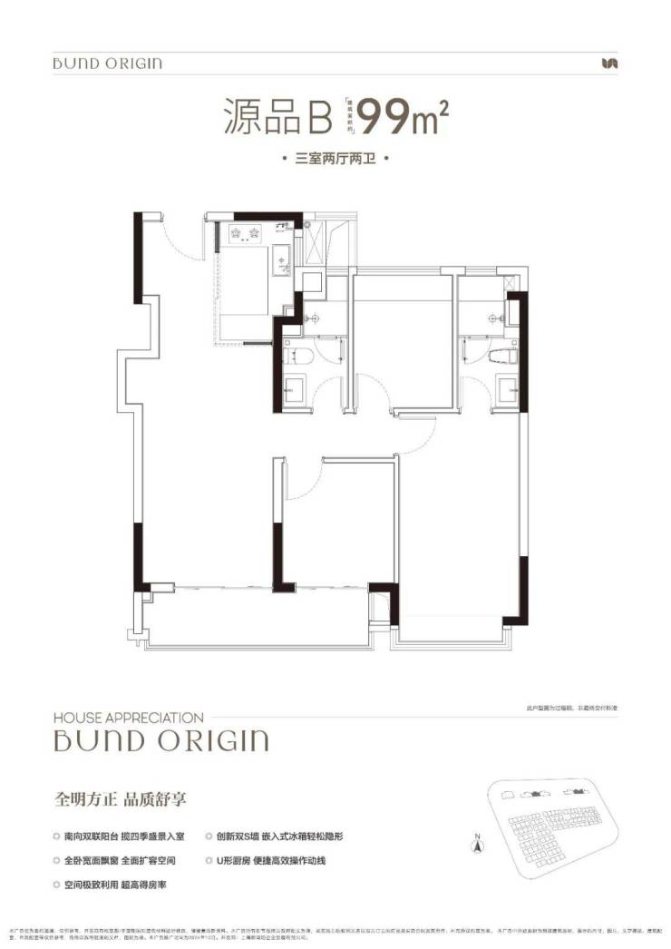 建面约99㎡3房2厅2卫▼