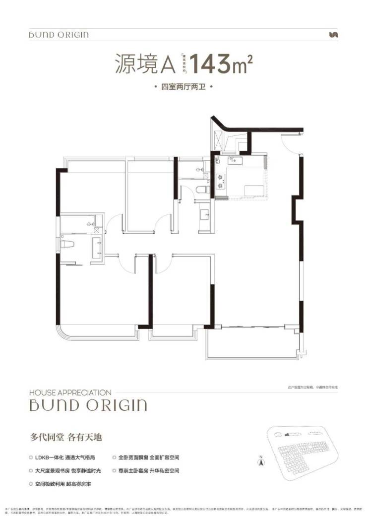 建面约143㎡4房2厅2卫▼