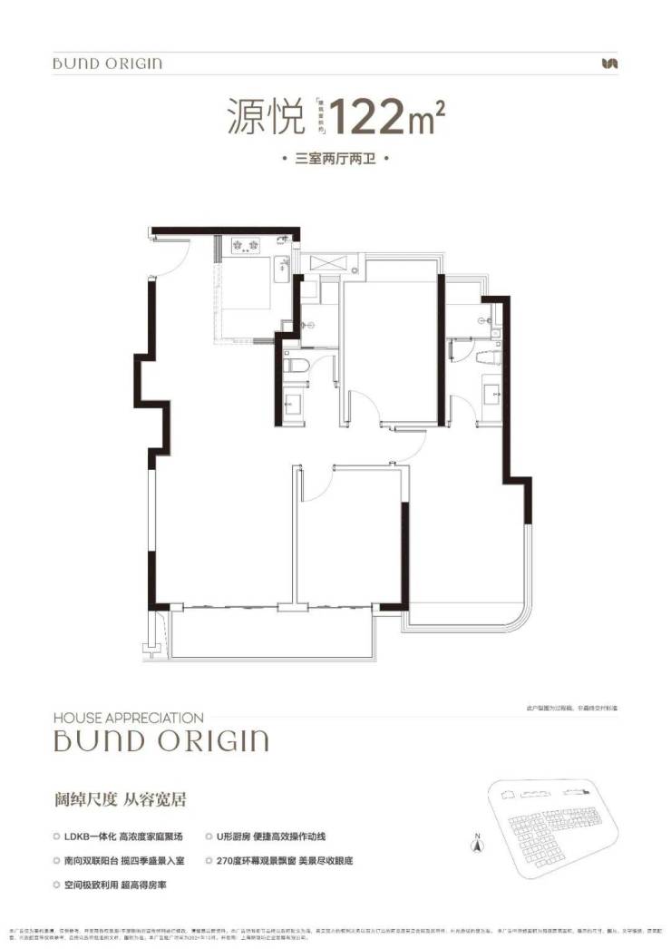 建面约122㎡3房2厅2卫▼