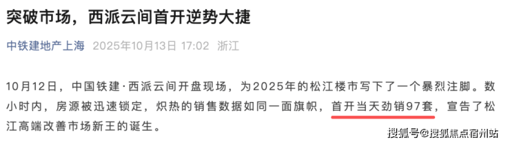 2025年10月,松江新城中国铁建西派云间首开入市,业内一片看好。这个被贴上“松江5万单价产品天花板”标签的项目,承载着中国铁建在松江打造轻奢标杆壹号作品的野心。