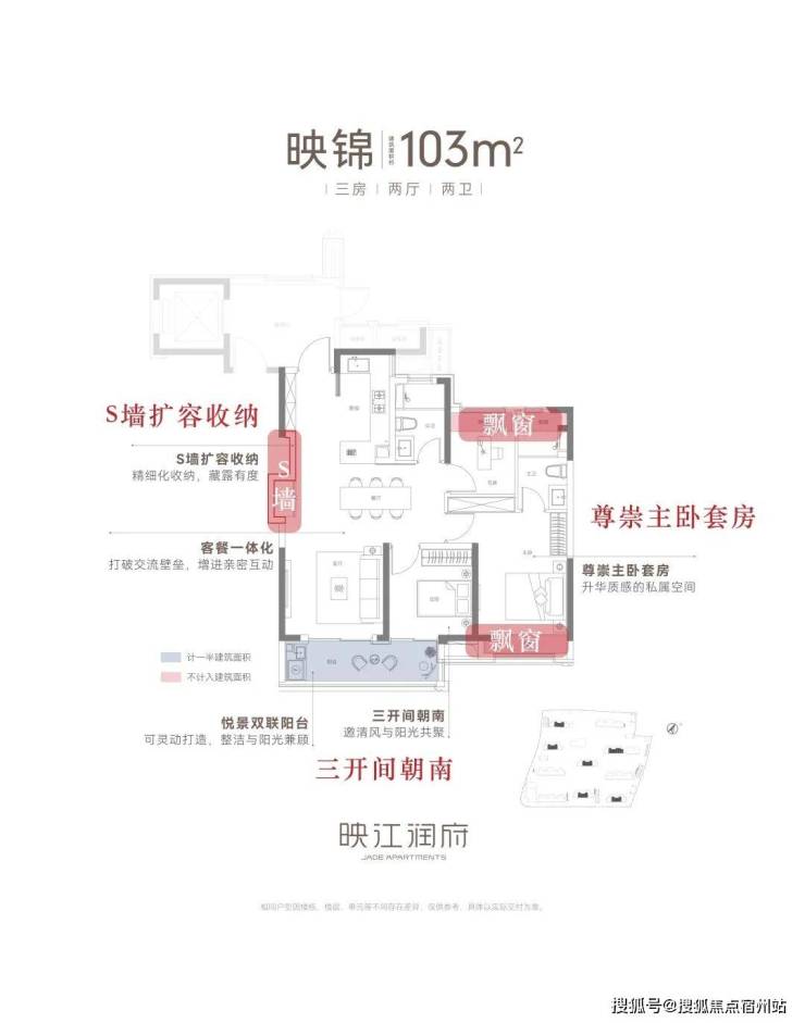 无论是建面约89㎡还是103㎡的户型,均采用了三开间朝南设计,南北通透,更有利于室内收纳更多的阳光与清风,实现更健康的人居、