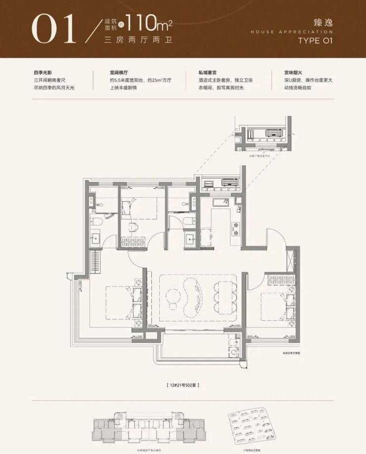 主推建面约89-110㎡3房户型,