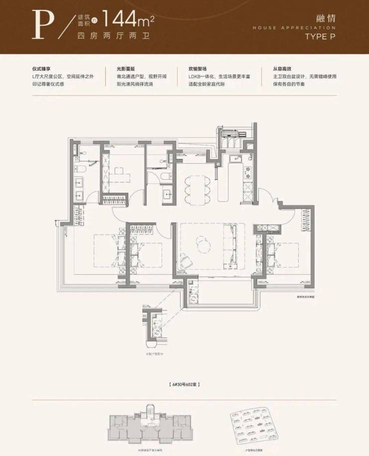 再来看下建面约144㎡4房,部分装标是有所升级的。