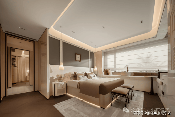 主卧依旧是华润置地经典270°转角窗配置独立衣帽间,开间约3.45m,景观视野相当不错!还有更多细节值得现场一探究竟~
