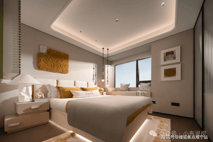 华润外滩瑞府售楼处热线:400-8855-420☎️☎️✅✅✅华润外滩瑞府售楼处热线:400-8855-420☎️☎️✅✅✅还有墙面的细节处理,电视背景墙为皮革硬包+深色木饰面,不惜成本将金属条嵌入墙内打造出更细致的设计效果~