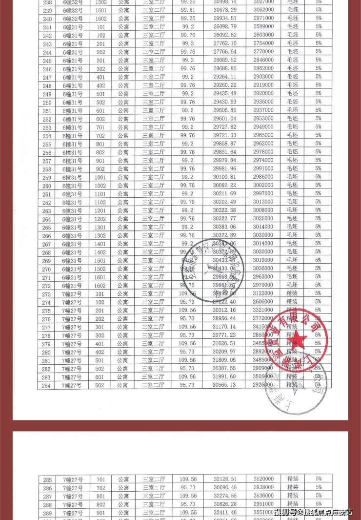 项目一房一价表