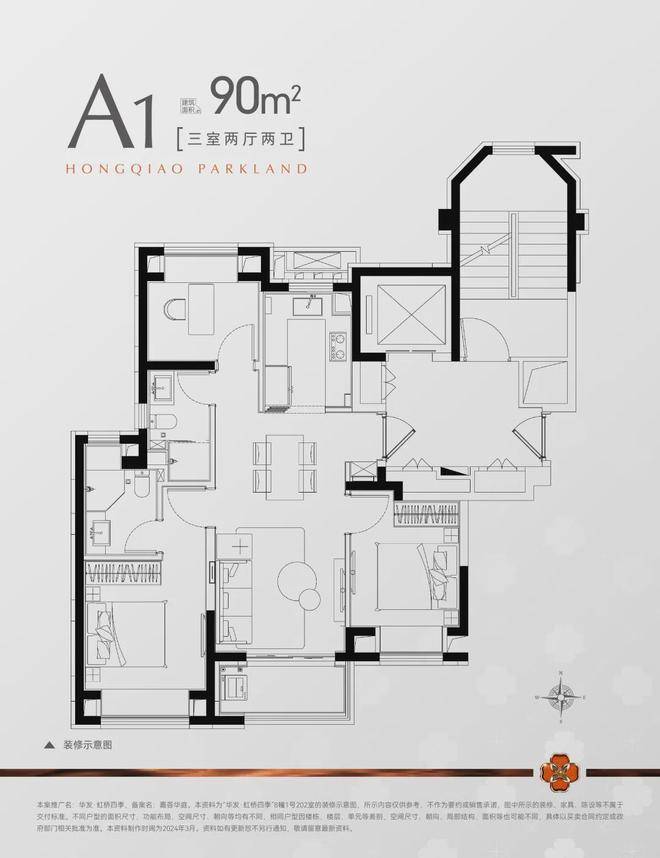 建面约90㎡3房2厅2卫▼☑️☑️华发虹桥四季售楼处电话:400-8787-740☑️☑️