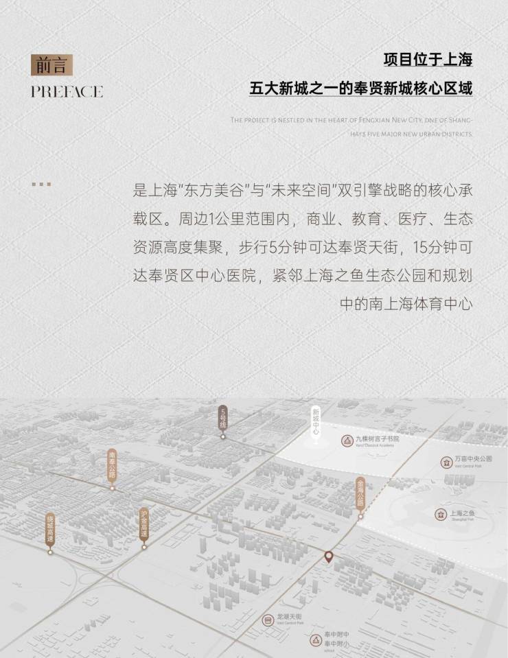 投资保值 :奉贤新城核心规划 + 地铁 5 号线 + 双天街 + 上海之鱼生态红利,区域价值持续提升;低密改善产品稀缺,现房出租率高、租金稳定,投资回报有保障。