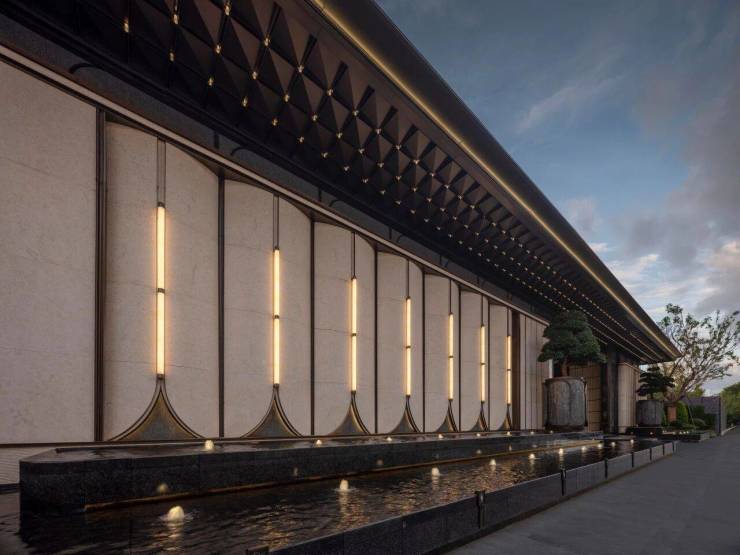 建筑风格 :现代简约精奢风,外立面采用铝板 + 玻璃幕墙,简洁大气,质感十足,与湖景完美融合。