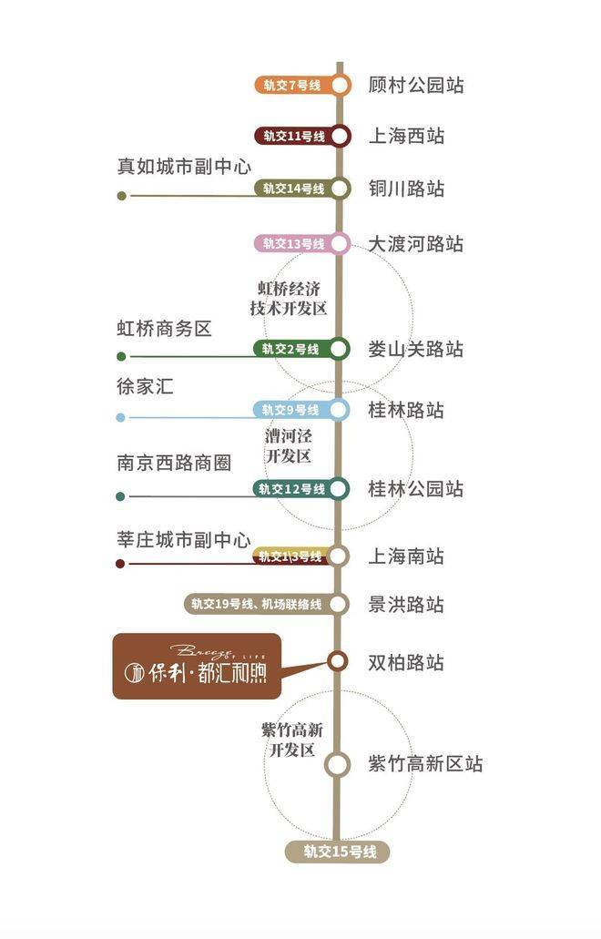 3站紫竹、4站徐汇,可换乘1号线通往徐家汇、新天地;未来19号线建成后,在景洪路站换乘可4站前滩、保利都汇和煦售楼处电话:400-8787-740 VIPLINE贵宾热线6站后滩,直达陆家嘴等CAZ核心。