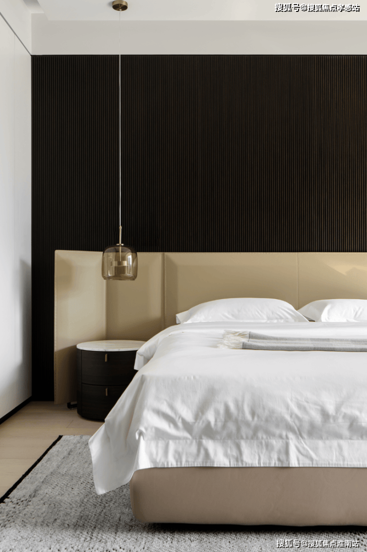私密场域依旧保持静谧,黑白色基础上搭配了更多的色彩,例如深棕、浅紫等,艺术品的衬托深邃迷人,热络了家的氛围。