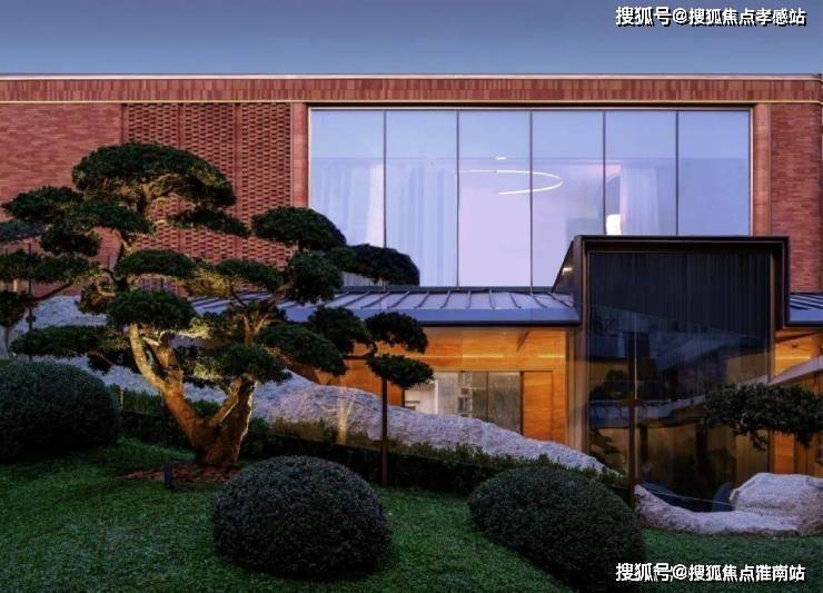 例如,在社区入户,目前已经完美呈现出来的,有强烈视觉冲击的立面 大量的红砖、红洞石及大面积的落地弧形玻璃搭配的相得益彰,整个门头既有厚重的历史感,又不失极简主义的现代美。