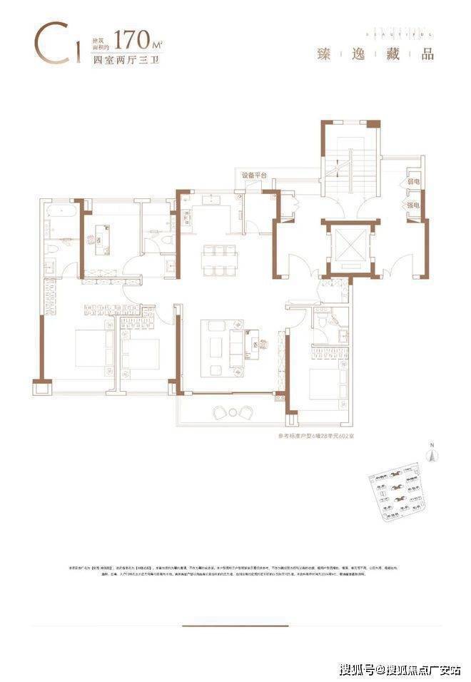 建面约170㎡的两款4房2厅3卫的终极改善户型,适配了全生命周期的家庭需求,不仅实实在在将每个房间的体量放大,亦拥有了更多收纳与灵动空间。