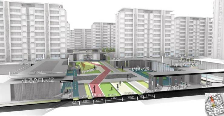 据悉社区由自持住宅、可售住宅、社区配套三大功能组合而成,北区为公区自持配套区,中区为住宅社区,南区为住宅社区及配套。