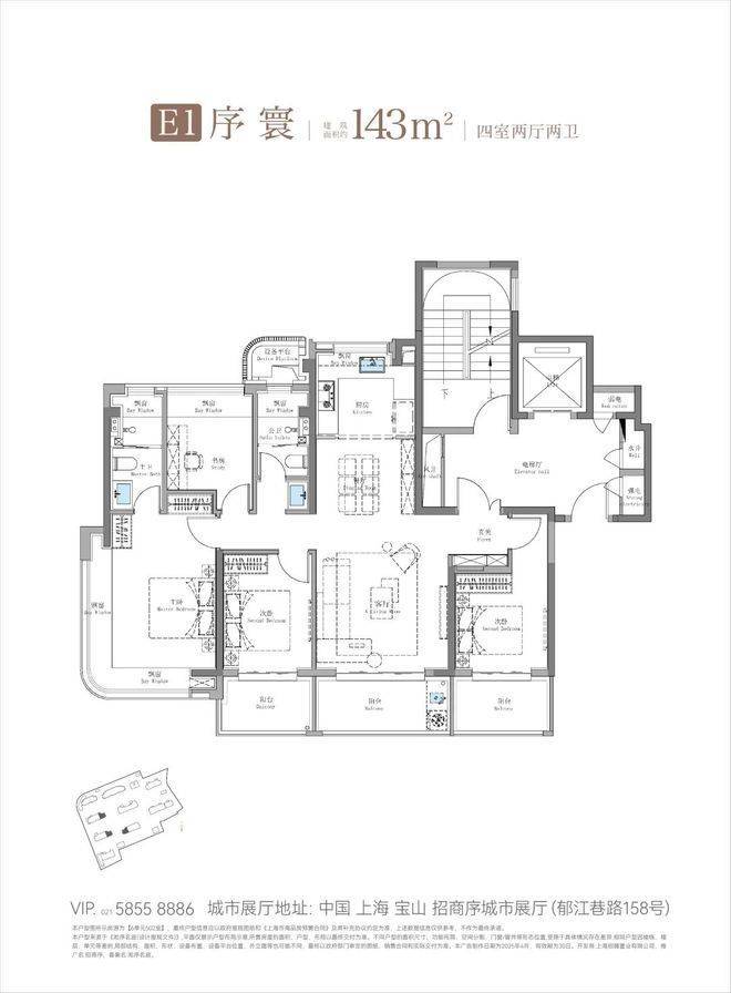 建面约143㎡4房是南北通透、✅✅招商序售楼处电话:400-8787-740✅✅四开间朝南的户型格局。