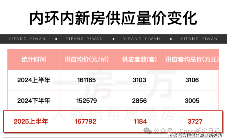 数据显示,2025年上半年,内环内新房供应套数为1184套,远不及去年上半年3103套的供应体量,而套均总价已由去年上半年的3106万涨到今年的3727万(信息来源一房一万数据库)。这与土拍价格不断突破,市中心新房价格日新月异像契合,北外滩地块12.66万/㎡楼板价,预计20万/㎡,而徐汇内环也已经冲上20万+/㎡。宸嘉龙华项目预计售价或破19万/㎡,静安东斯文里150米超高层住宅楼面价超过11万/㎡,最终售价或在17万/㎡左右,4000W以内的选择正被疯狂压缩,未来或只能置业大平层。