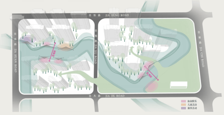 国贸地产代建了一座约1.8万方的滨河市政公园,而且三座岛屿社区都有不同的主题,并设置了非常丰富的景观节点。