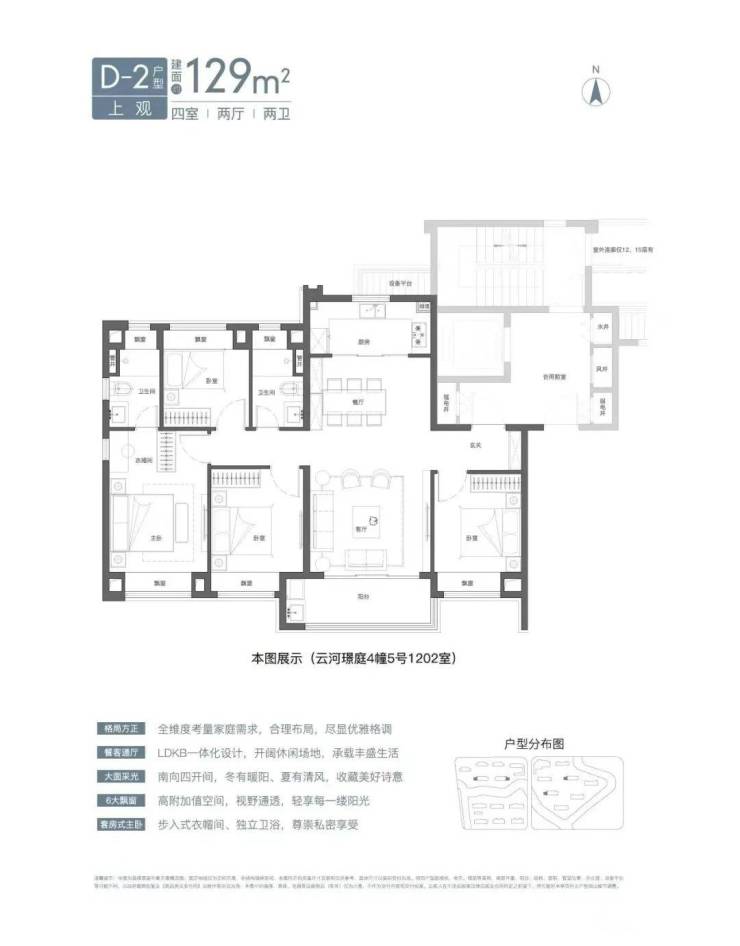 预算充足的小伙伴可以入手建面约129㎡4房2卫。