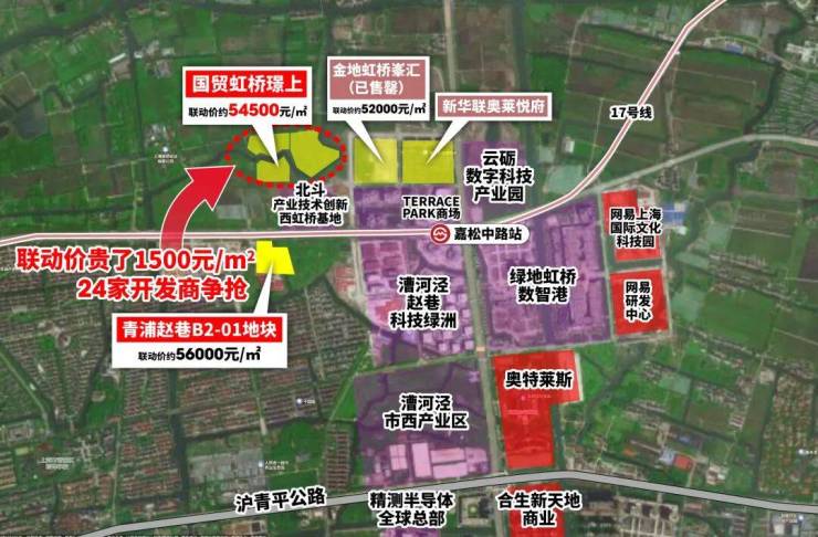 产业能级不仅更高,而且兑现更快。项目紧邻以嘉松中路站为核芯的科创产业集群,此处正在打造漕河泾赵巷科技绿洲,定位为千亿级产业园区。