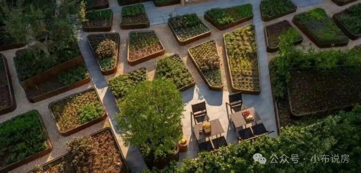 屋顶菜园:城市田园梦,人与自然的乌托邦(此处指配套用房屋顶)。一块小菜地,可以唤起人们对土地和自然的亲近感,也能让一家人在照料蔬果的时光里,创造美好、独特的共同回忆。