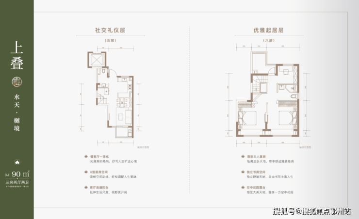 上叠产品都是带有空中花园露台,日常聚餐、烧烤、开party等娱乐活动有大展拳脚的空间,同时客餐厅一体化+U型厨房空间+尊崇主卧套房,户型设计合理,格局方正。
