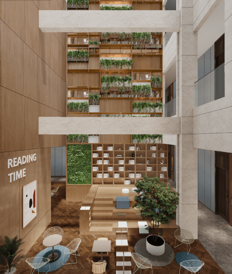 ▲专属空中书吧,无界泛会所,轻奢雅致艺境,安放心灵的悦己空间,公区设置书吧、打造泛会所, 将高雅品位延伸至公共区域。
