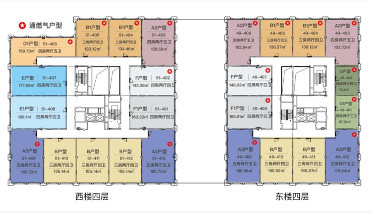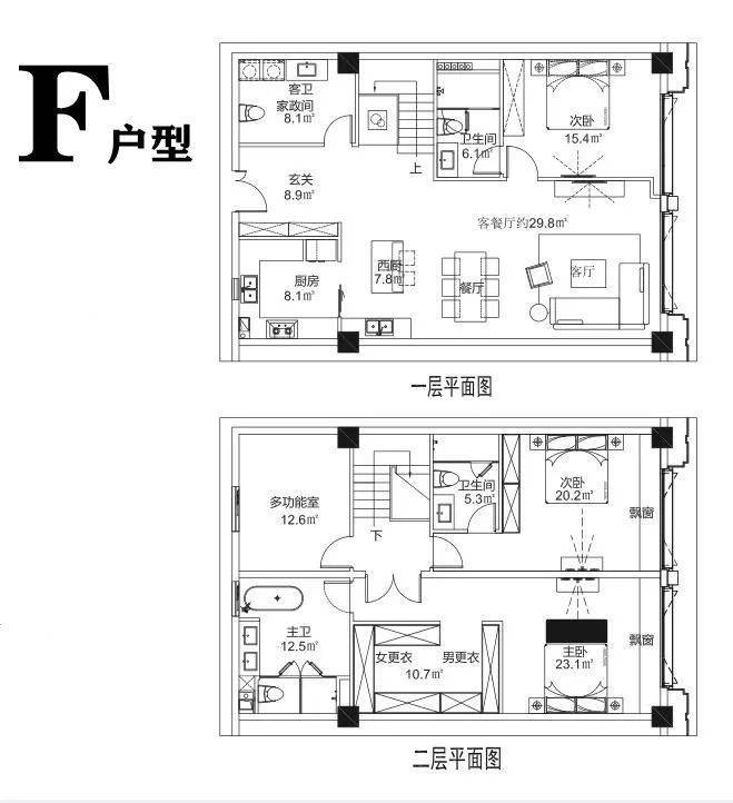 F1户型:建面约160-180m²(套内面积210-240m²)