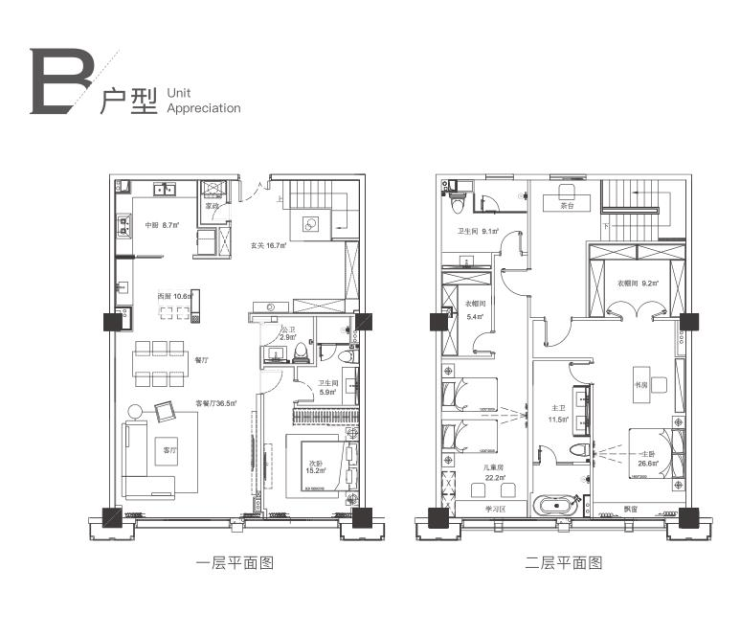 B户型:建面约160-170m²(套内面积220m²)