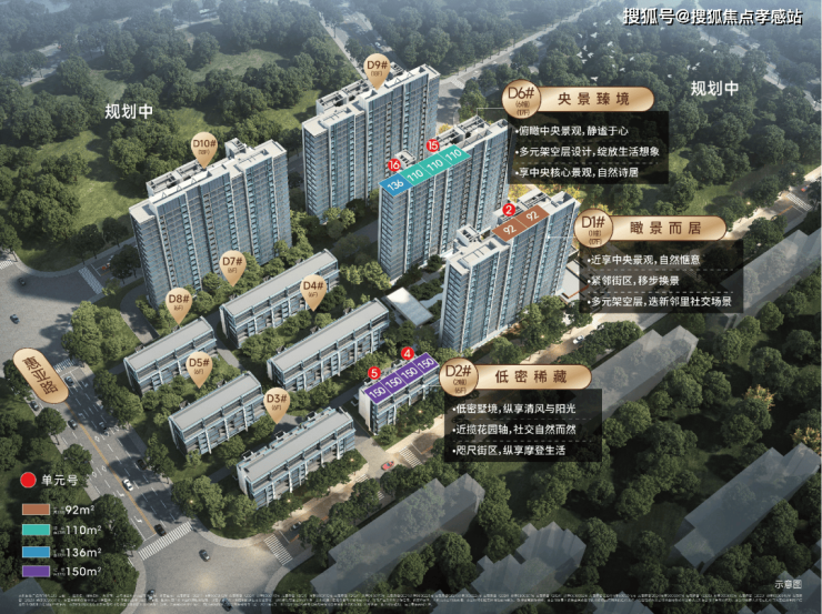 社区内部围绕叠墅区、小高层区以及高层区,打造三大主题花园中庭。