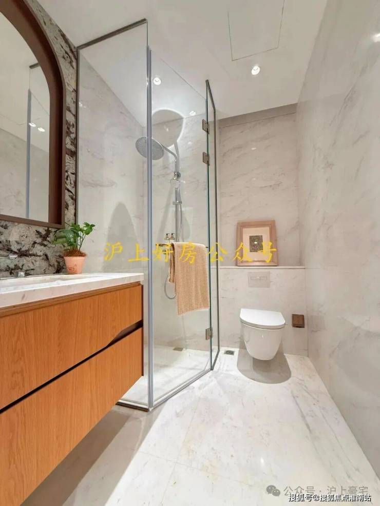 次卫则是采用不同风格,墙面统一采用米洞岩板、地面为深咖色瓷砖,黑金配色风格区别于看多了的海派设计,眼前一亮: