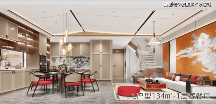 中国中铁·世纪尚城售楼处热线☎️☎️:400-9966-940🐾🌴△134㎡客餐厅效果图