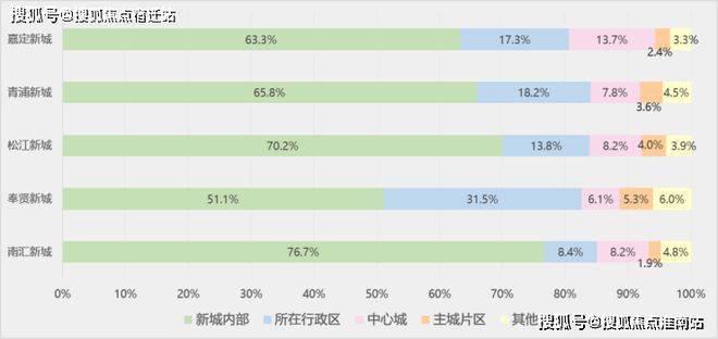 而在五大新城中,松江新城的内部就业比重高达70.2%(数据来源:规划上海SUPDRI公众号),在五大新城中处于领先地位。